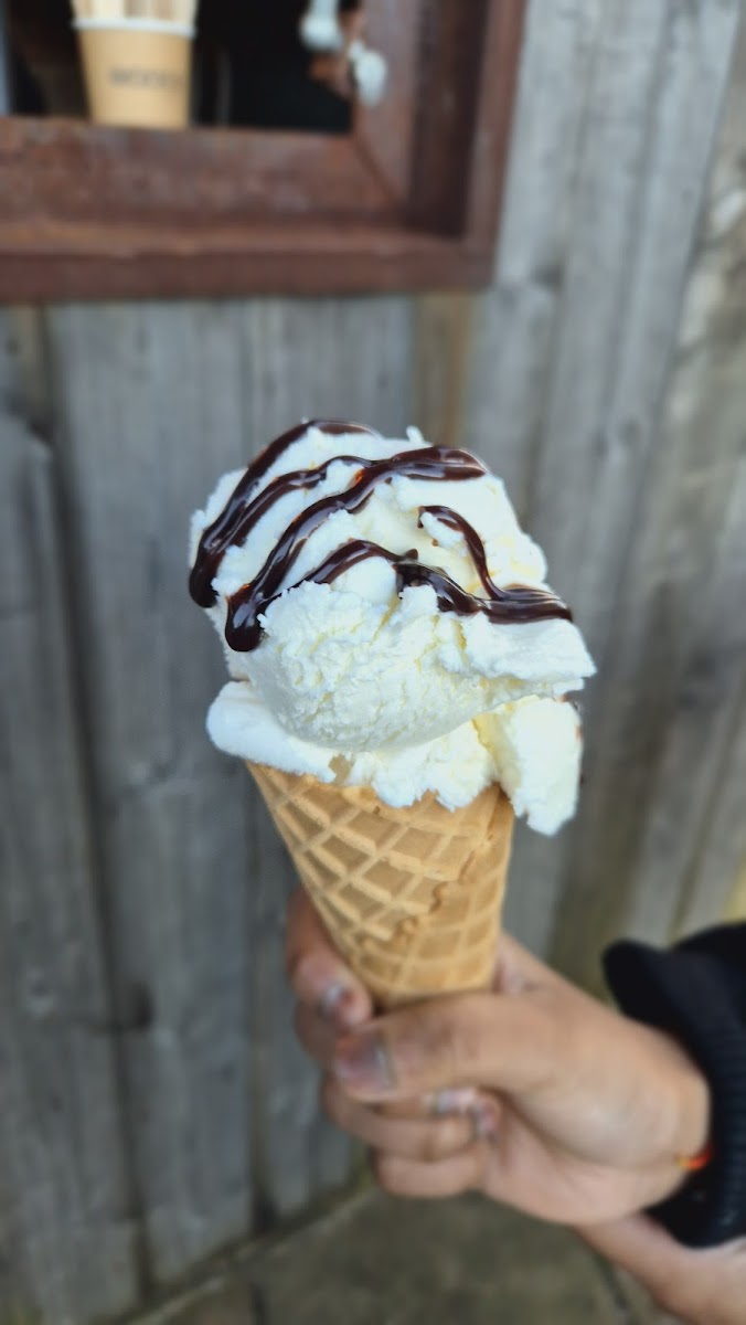 Favorites include coffee cake, chocolate cake, and lemon cake, all of which pair beautifully with a hot drink. Brownies and scones add to the appeal, offering both rich and lighter options. For something more indulgent, vanilla ice cream, sorbet, and vegan ice cream provide a cool and satisfying finish.
